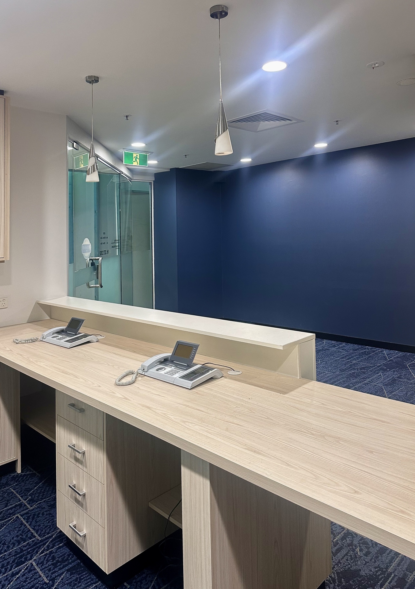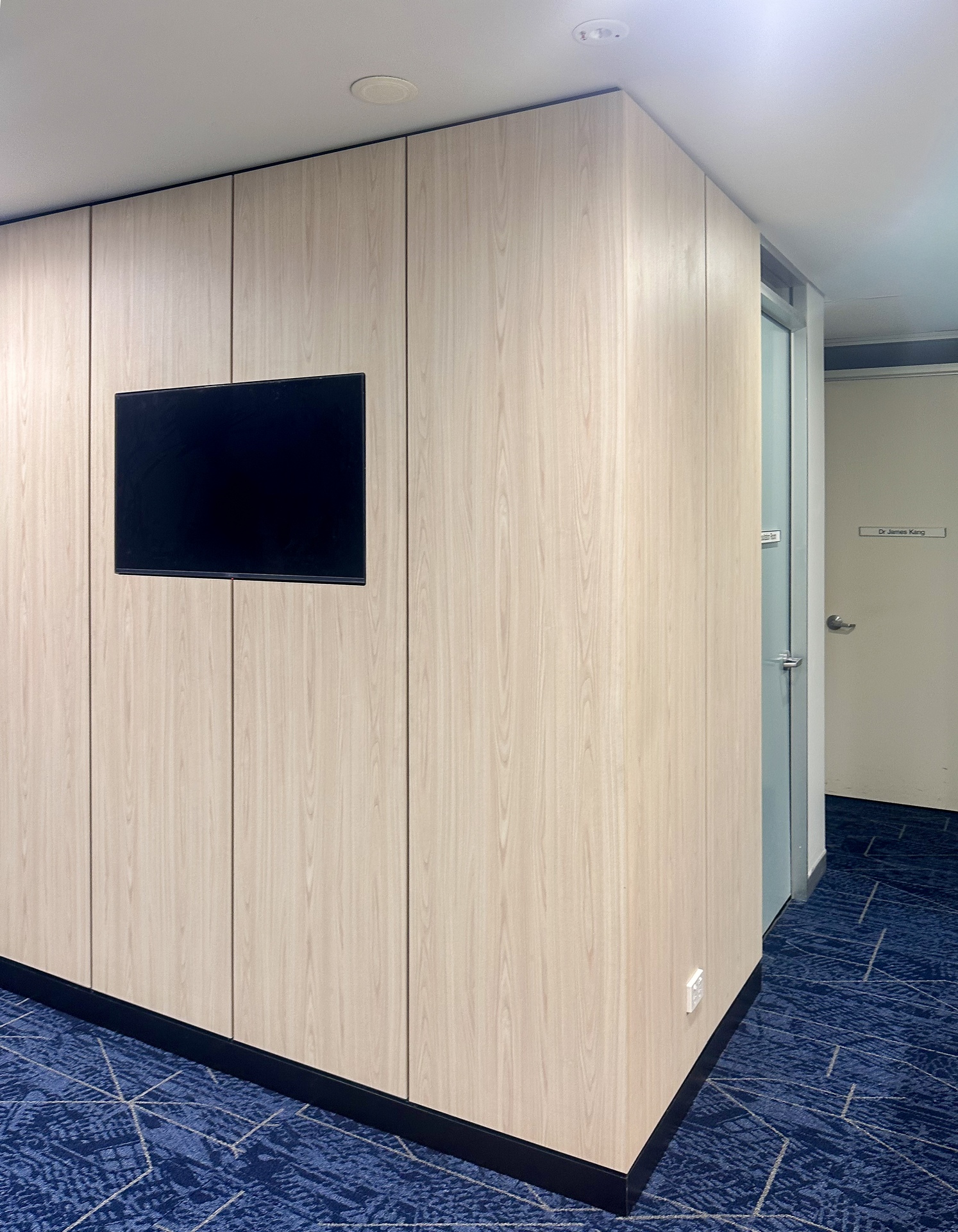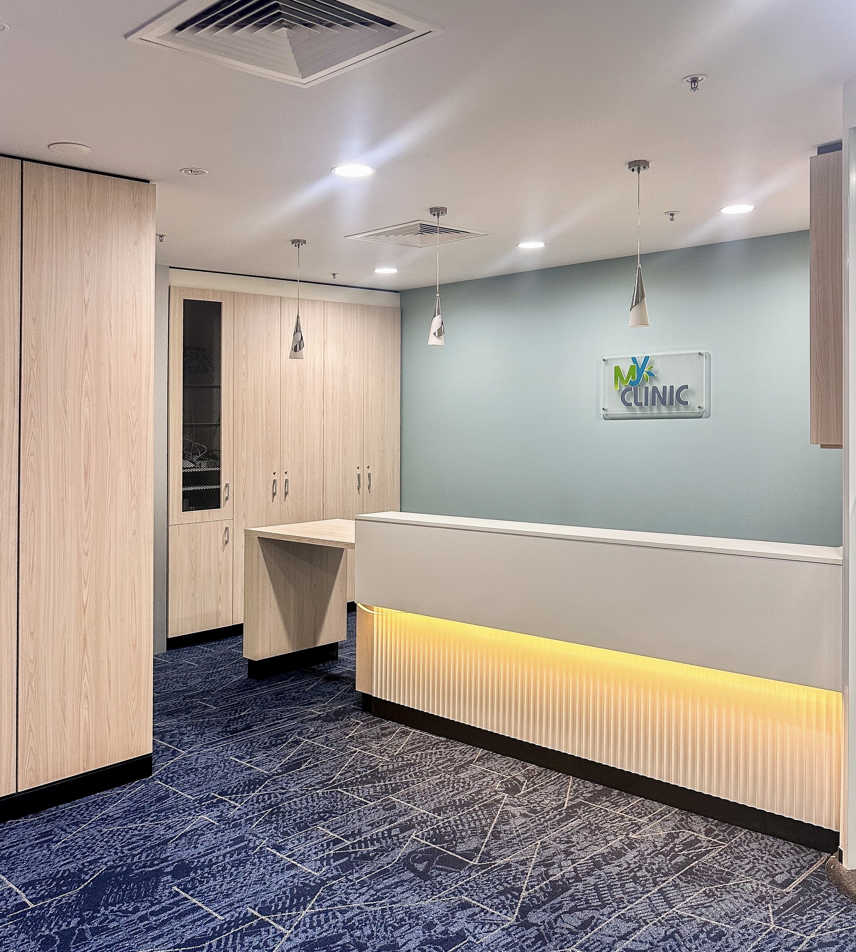 A specialized medical clinic fit-out focused on functionality, patient comfort, and compliance. We delivered custom medical-grade joinery throughout the reception, storage, and consultation areas, prioritizing clean lines and a durable, professional environment for this busy general practice.